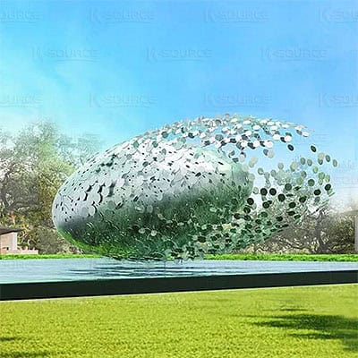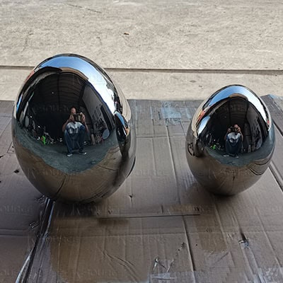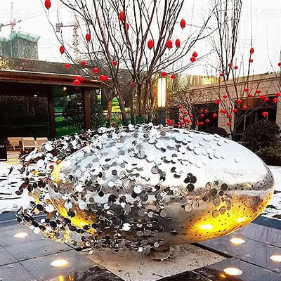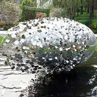 The main feature of this type of egg-shaped sculpture is its reflection and integration into the environment or light. Solid or hollow spheres can make the entire environment full of light and color by reflecting the environment and light, making people feel a mysterious, wonderful, harmonious, and natural feeling.